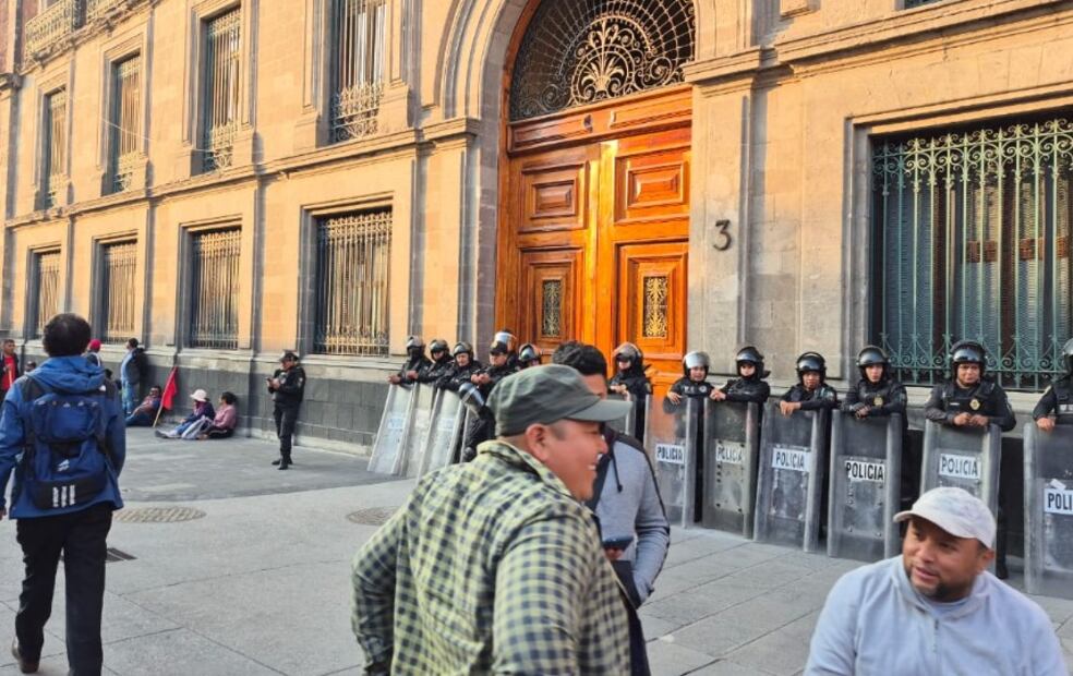 Maestros de la Coordinadora Nacional de Trabajadores de la Educación (CNTE) cercaron este miércoles el Palacio Nacional e impidieron la realización de La Mañanera del Pueblo, la cual fue transmitida a través de la Redes Sociales de la presidenta Claudia Sheinbaum, desde el salón Tesorería.