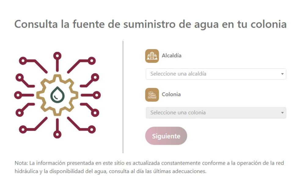 SEGUIAGUA pone a disposición de la ciudadanía capitalina el sitio web aguaentucolonia.sacmex.cdmx.gob.mx en el cual tendrás que seleccionar tu alcaldía y colonia para conocer cómo y cuándo es el suministro de agua en tu colonia.