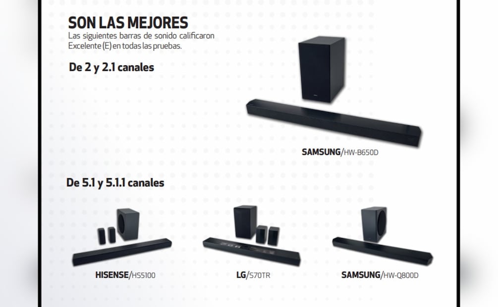 De acuerdo con Profeco, las mejores barras de sonido y que tuvieron una calificación de excelencia son: