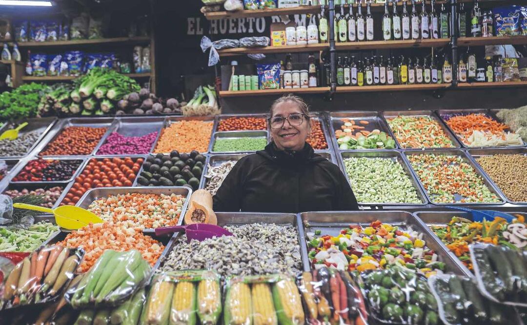 La señora Marisol Torres, comerciante en el local 580 llamado el Huerto de Marisol, dijo que con menos de 200 pesos las familias se pueden hacer una ensalada brasileña con crema, manzana, arándanos y durazno, para 10 personas.