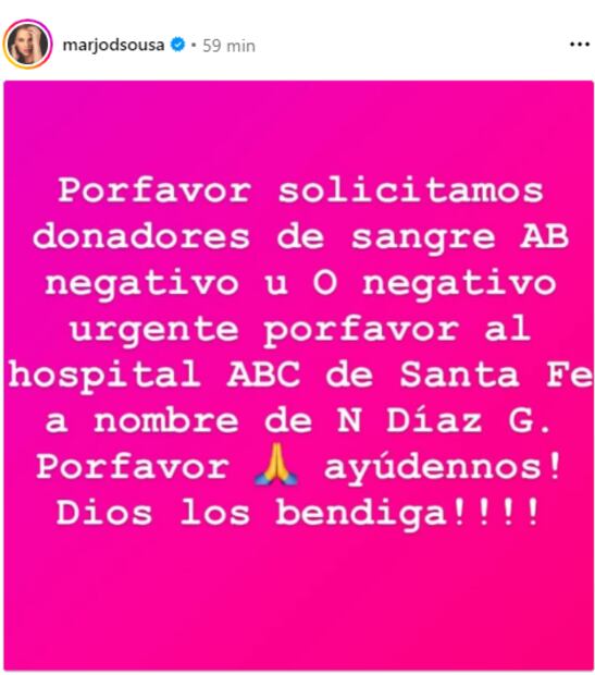 “…Cambio de información, la sangre la necesitamos en Ciudad de México, ya nuestro querido Nicandro será trasladado, gracias por compartir equipo…Donadores de sangre para el hospital ABC de Santa Fe…”, escribió la ex de Julián Gil.
