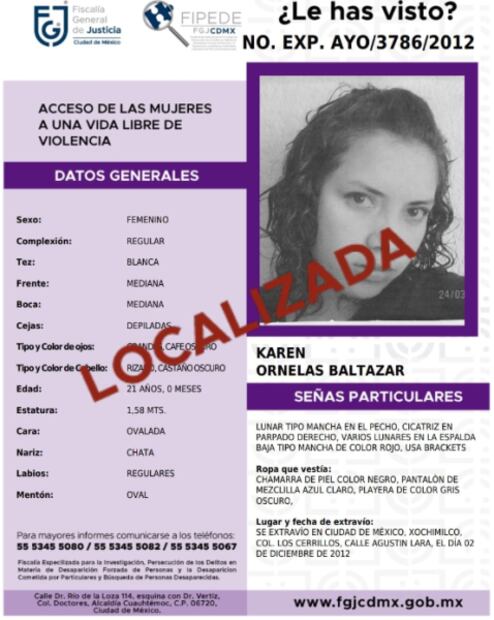 Días después, Karen fue encontrada sin vida y su cuerpo tenía marcas de estrangulamiento; las indagatorias han determinado que el presunto feminicida serial asfixiaba a todas sus víctimas.