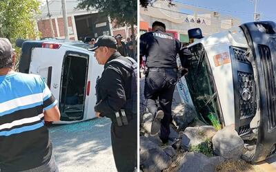 Este miércoles antes de las 11:00 horas, el conductor de la combi de la Ruta 55 que se dirigía a la Central de Abasto del municipio perdió el control a la altura de la calle Violetas, en la colonia Potrero del Rey.