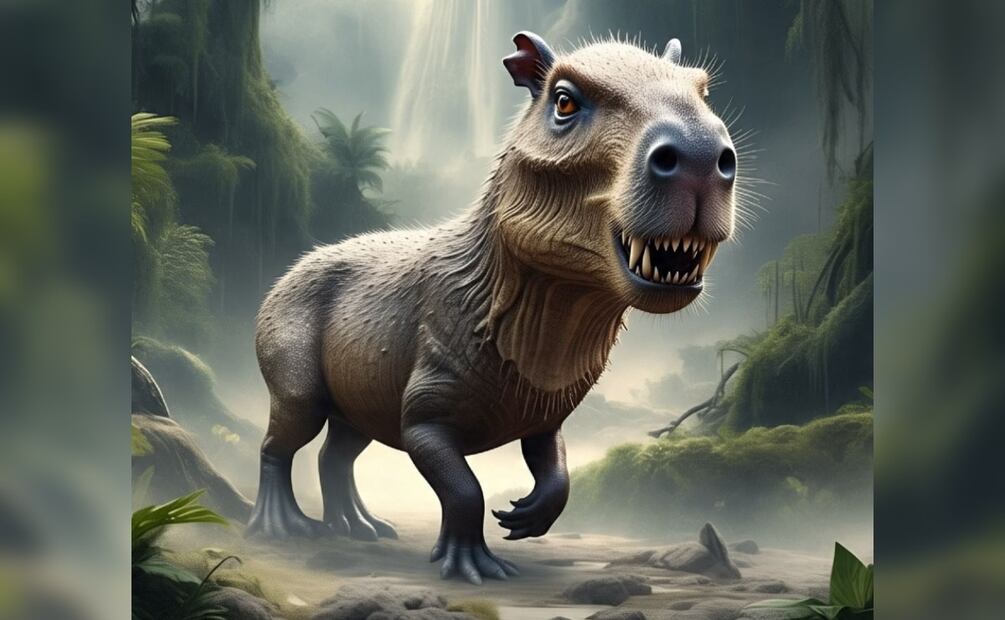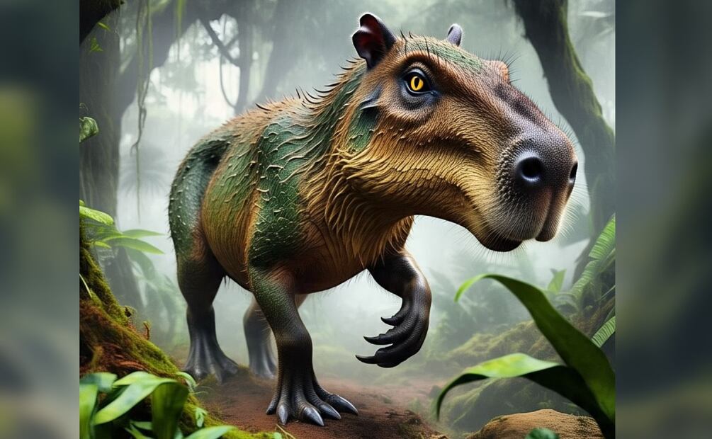 El resultado de combinar a un Capibara con un dinosaurio aterrador es sumamente sorprendente, no creía que podría ver a un Capibara con terror, sin embargo, fue posible.